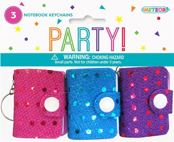 NOVELTY SEQUIN NOTEBOOK KEYCHAIN 3/PK 75421