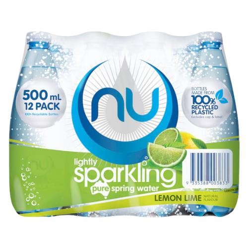 NU Lightly Sparkling Water Lemon Lime 500ML 12/CTN