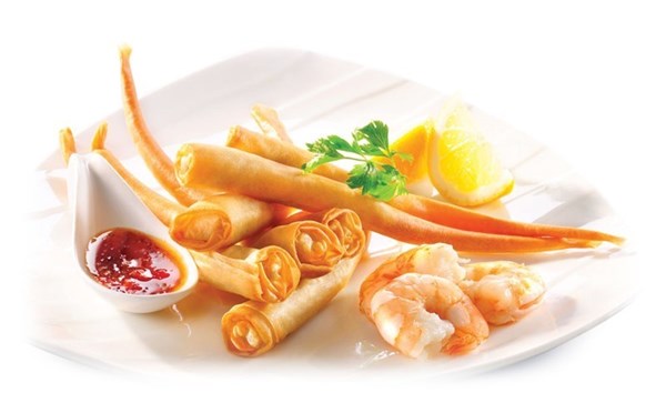 Chunky prawn pieces in this crispy spring roll pastry have been marinated in herbs and garlic to give a flavourosme bite