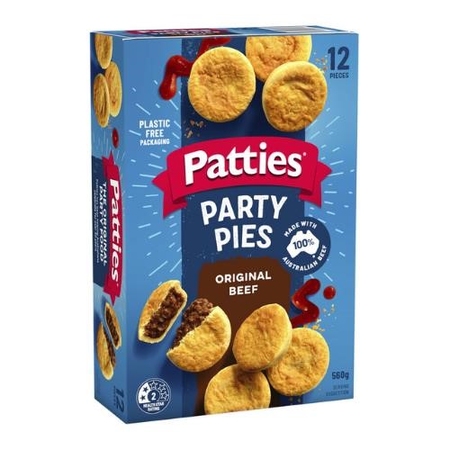 Patties Party Beef Pies a dozen of our famous party pies made with 100% beef in flavoursome gravy encased in flaky golden pastry