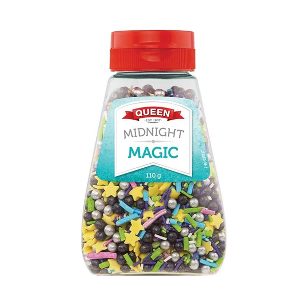 Oetker Midnight Magic Sprinkles are a mix of dark, metallic and bright coloured shaped spheres, orbs, stars and strands