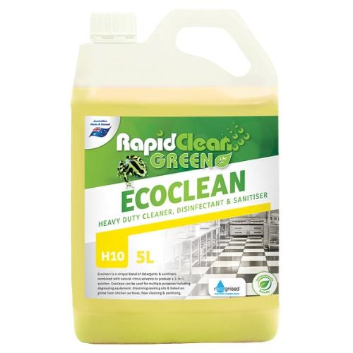 Ecoclean is a bright yellow liquid combining a heavy duty detergent system with a powerful disinfectant and natural citrus solvents