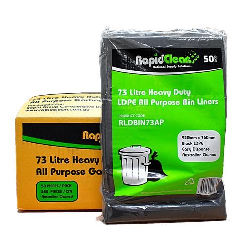 Rapid Clean Garbage Bag Heavy Duty All Purpose 73L Black 50/PK 5/CTN
