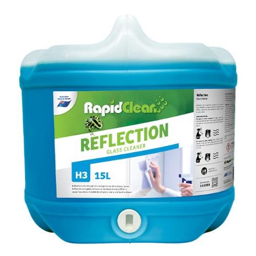 RapidClean Reflection – Glass Cleaner is a clear blue liquid