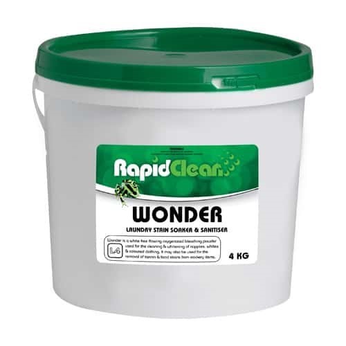 RapidClean Wonder Soaker Sanitiser is a multi-purpose stain remover suitable for general purpose laundering of garments, all types of linen (excluding wool) and recommended for hand-washing, and in top and front loader washing machines