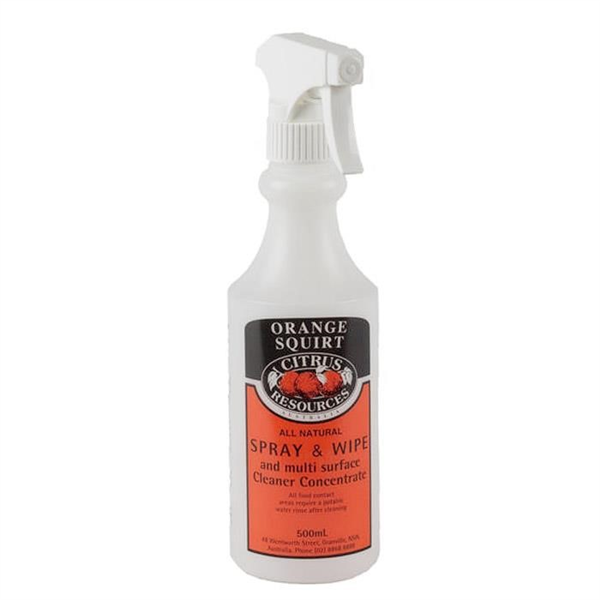 is a screen-printed, chemical-resistant bottle designed for use with Research Products Orange Squirt—a powerful, multi-purpose spray and wipe solution