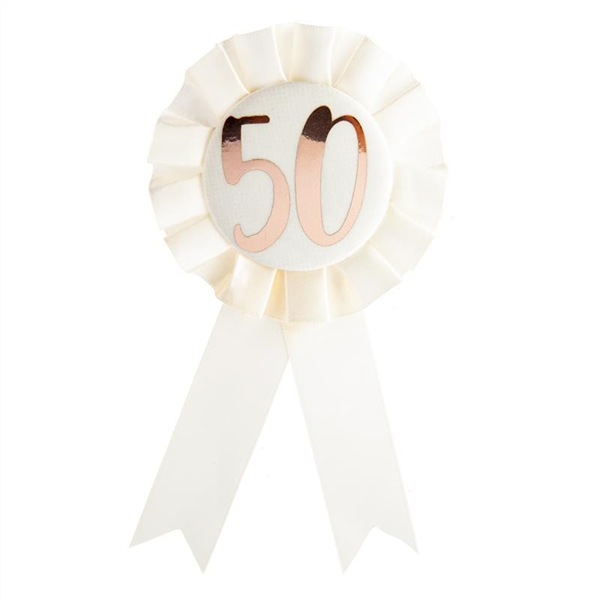 Rosette Badge 50th Rose Gold On White