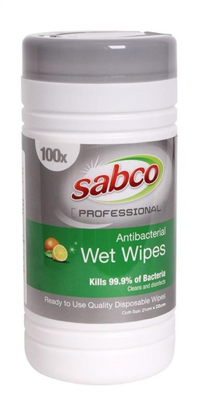 Sabco Antibacterial Wet Wipes 100/Tub