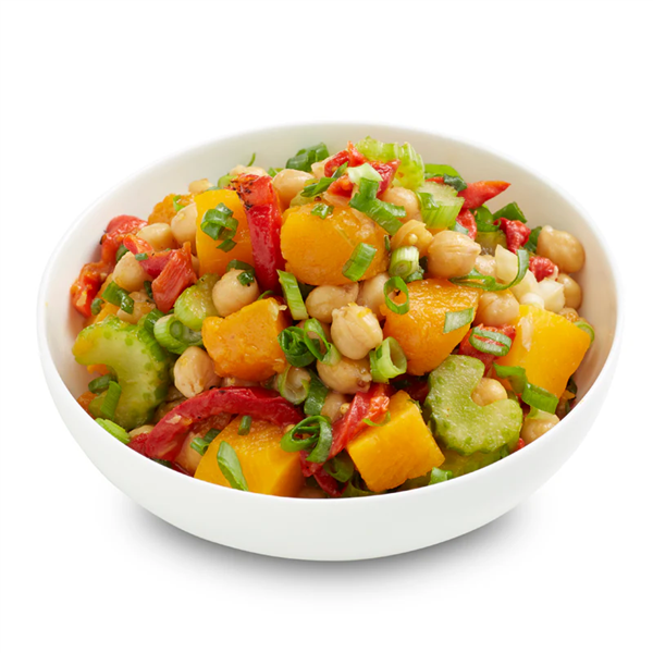 Chickpeas & roasted pumpkin with fresh vegetables in a sesame oil dressing