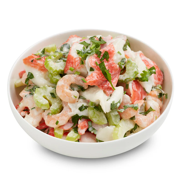 Seafood extender & prawns with crisp vegetables & herbs in a full egg mayonnaise