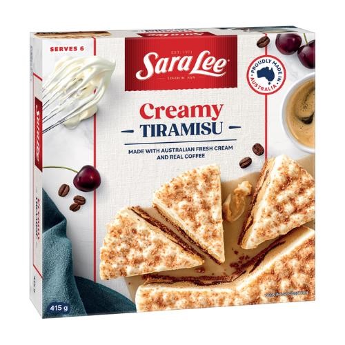 Our creamy Tiramisu is made with real coffee, swirls of chocolate and fresh Australian cream, served on a scrumptious chocolate biscuit base