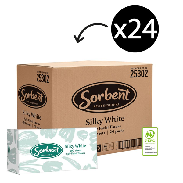 Sorbent Facial Tissues 2PLY 200/PK 24/CTN