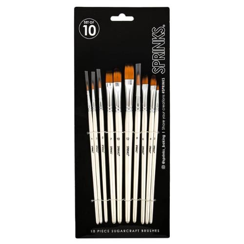 Sprinks Brushes (Set of 10) - by Sprinks Contains 10 brushes, making it easy to paint cookies, sugarcraft models, cakes and cupcakes with designs from impressionistic to detailed