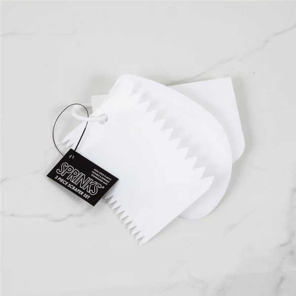 The Sprinks 3-Piece Scraper Set is a great versatile tool for cake decorators! Suitable for all food contact applications including ganaching cakes, bowl scraping etc