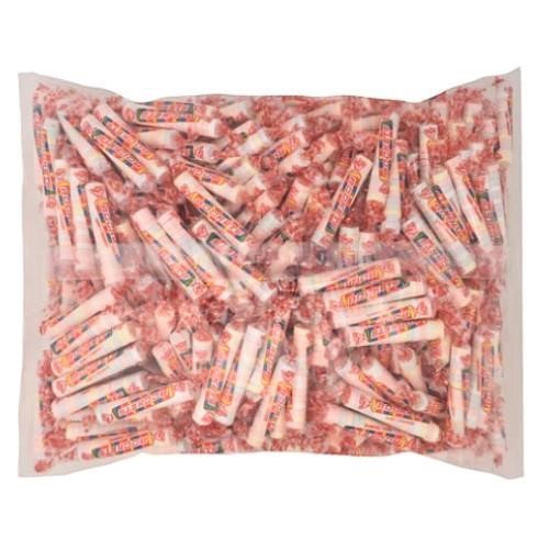 These small rolls of compressed candy have a slight fizz when eaten would be great for a kids party of pinata as these items are all indivduallly wrapped and would be approximately 4cm long where the lollies are and 8cm if you include the twists at the end of the lollies
