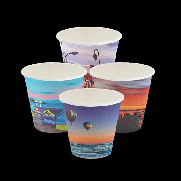 8oz True Fill Single Wall Smooth PLA Postcard Series Hot Cup 86.5mm
