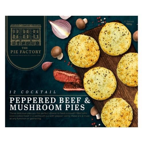 The Pie Factory Cocktail Pies Peppered Beef & Mushroom 12/PK