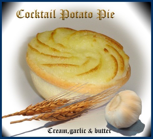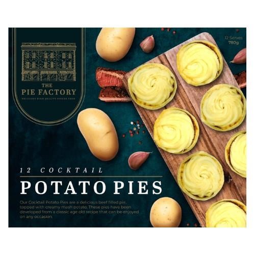 Cocktail sized beef filled pies topped with creamy mashed potato in golden, crispy pastry