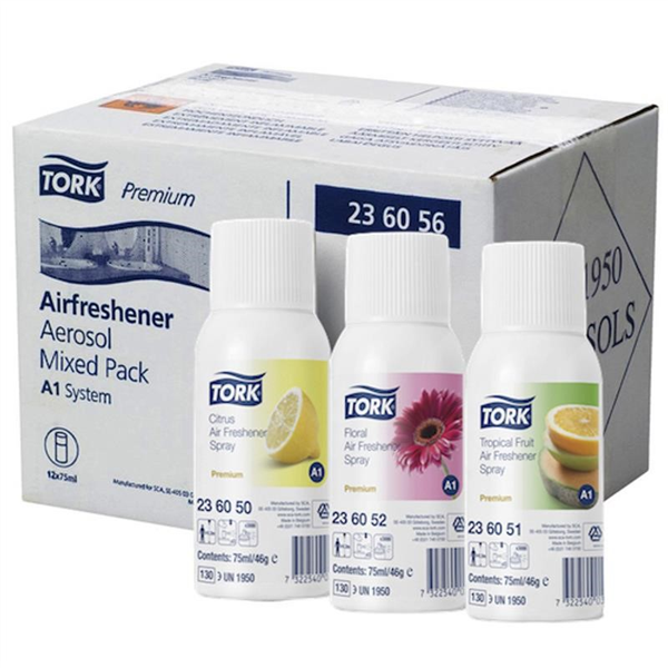 Control odors effectively and efficiently in your restroom with the Tork Mixed Pack Air Freshener Spray
