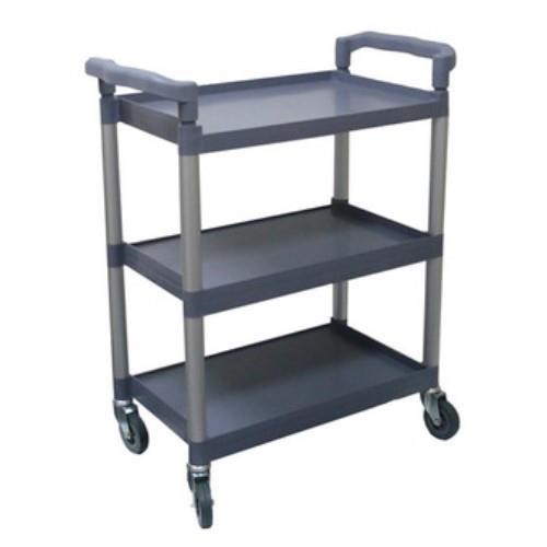 Featuring a comfortable ergonomic handle and heavy-duty castors, this compact grey trolley delivers smooth manoeuvrability across different environments