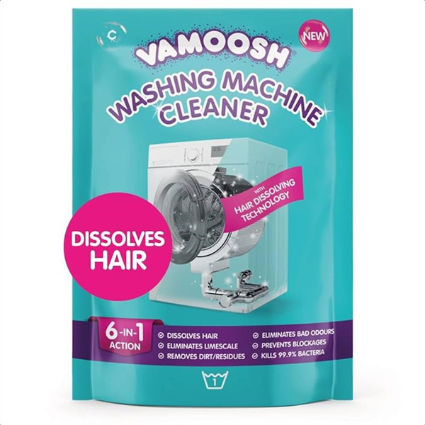 Clogged up hair is a common cause of washing machine breakdown and bad performance (which can then lead to bad odours.) Vamoosh Washing Machine Cleaner's unique formula contains patented hair dissolving technology that removes clogged up hair whilst also eliminating dirt, limescale, 99.9% bacteria and bad odours