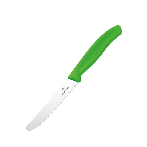 The curved end of this hardened stainless steel serrated knife gives that extra leverage for orange or lime peel and lets you cut through the delicate peel of an apricot or the tough skin of a sausage