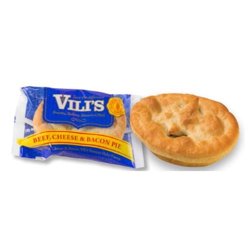 Vilis Beef Cheese & Bacon Pie is a delcious beef pie with a generous serve of diced bacon and melted cheese