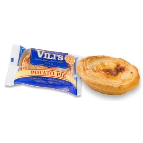 Vilis Potato Pie is filled with premium minced beef, this pie is topped with whipped buttery mash potato and melted cheese