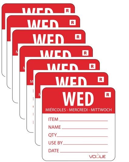 Colour coded food safety labels to correspond with your day-of-the-week rotation system