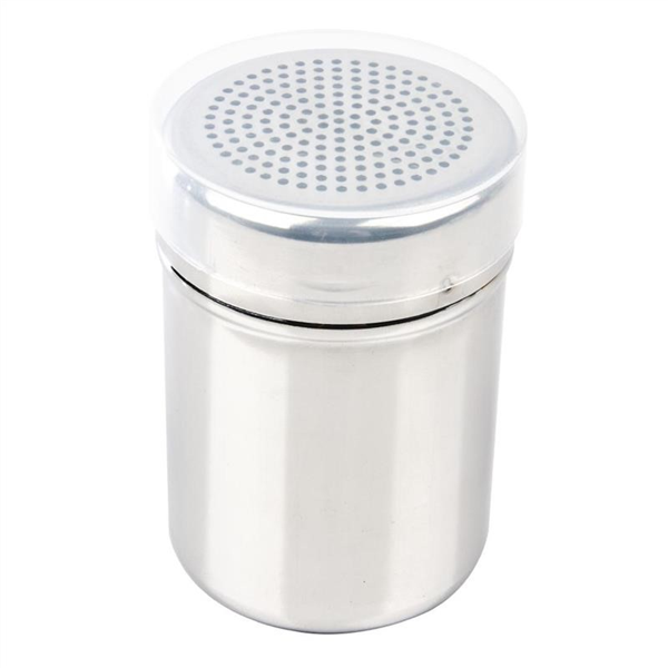 The small holes also maker it suitable for dusting hot drinks such as lattés and hot chocolate with cocoa powder