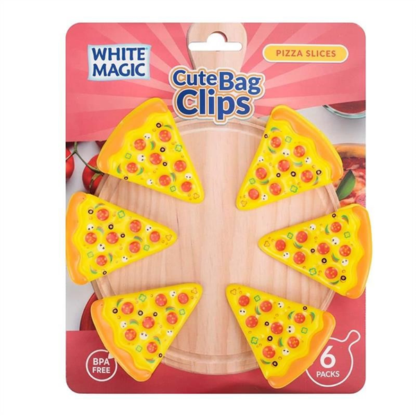 White Magic Cute Bag Clips Pizza 6/pk