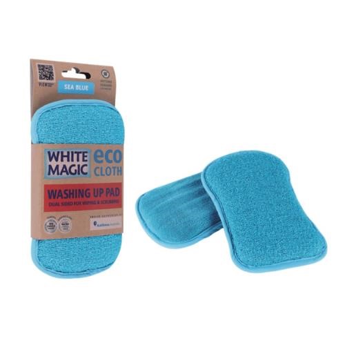 The White Magic Washing Up Pad Sea Blue is the ultimate washing up tool needing no to little detergent and can be washed hundreds of times for continuous use