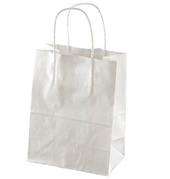 These petite sized white carry bags are strong and sturdy with a twisted paper handle