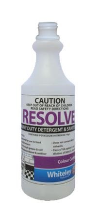 is a durable, screen-printed applicator specifically designed for use with Whiteley Resolve heavy-duty cleaner and degreaser