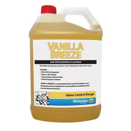 Vanilla Breeze is a long lasting residual action water-based air freshener, general purpose cleaner and sanitiser that removes unwanted odours with a pleasant vanilla fragrance