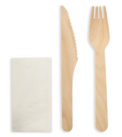 Wooden Cutlery Combo Knife/Fork/Napkin Individually Wrapped 250/CTN