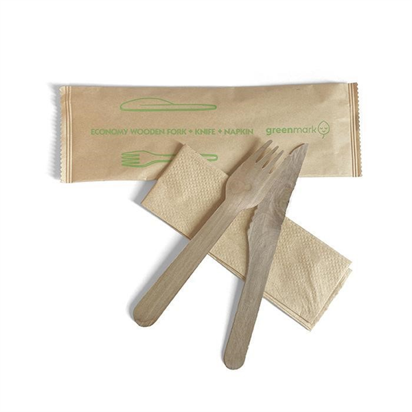 Wooden Fork Knife Napkin Economy Set 400/Ctn