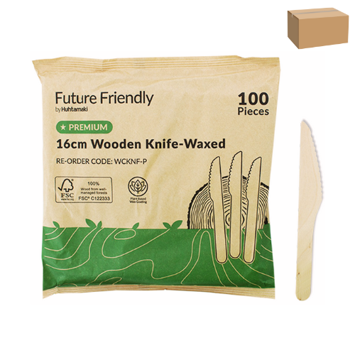 Brown Wooden Knives offesr an eye catching, economical alternative to traditional disposable cutlery at your take out restaurant, hotel, cafe, coffee shop, winery, office break room, or catered events with this environmentally friendly, renewable wooden knife! The heavy weight wood dinner knife is a great alternative to green, biodegradable plastic cutlery because it won't break down, or turn to mush, if stored in high heat areas