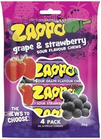 Enjoy these mouthwatering chews from Zappo! These individually wrapped grape and strawberry flavoured chews are perfect for events, parties or just filling up the pantry!