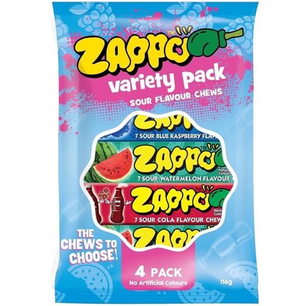 Zappo Sour Variety Hang Bag 116G 4/pk